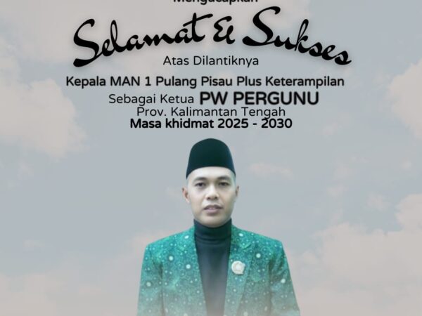 Selamat dan Sukses Atas Dilantiknya Kepala MAN 1 Pulang Pisau Plus Keterampilan Bapak Muliani, S.Ag., M.Pd Sebagai Ketua PW PERGUNU Provinsi Kalimantan Tengah. Masa Khidmat 2025-2030