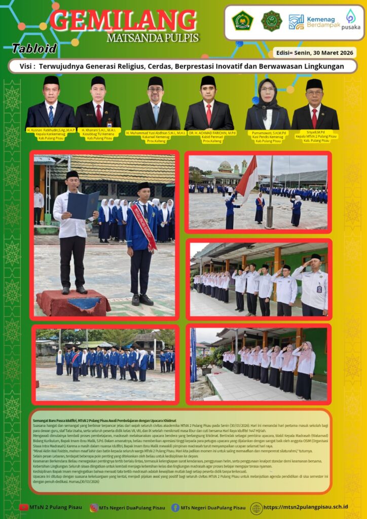 Upacara ini ditutup dengan suasana kekeluargaan yang kental, menjadi pijakan awal yang positif bagi seluruh civitas MTsN 2 Pulang Pisau untuk melanjutkan agenda pendidikan di sisa semester ini dengan penuh dedikasi.